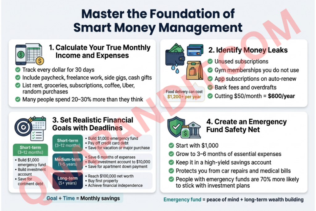 The difference between those who build wealth and those who don’t comes down to five fundamental practices: smart money management, following the 50/30/20 rule, cutting down major expenses, creating multiple income sources, and setting up automatic savings. These aren’t complicated strategies that require a finance degree – they’re simple habits that anyone can start today.